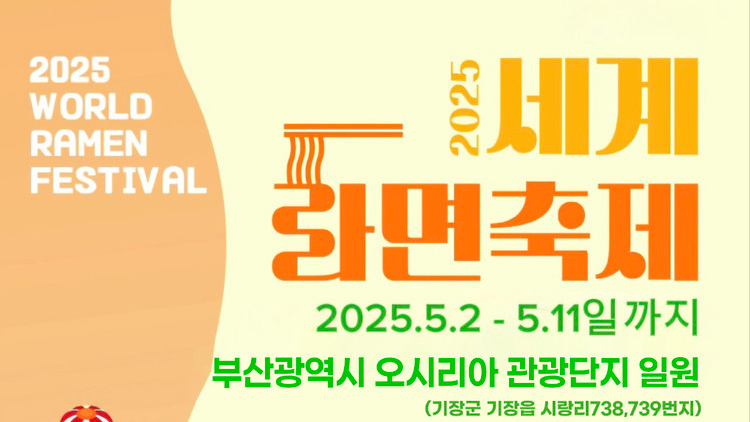 ‘세계라면축제 2025’는 5월 2일부터 11일까지 10일간 부산 오시리아관광단지에서 축제가 진행되고 있어요. 올해 축제의 주요 행사 내용은 라면요리왕, 싱코리아, 실버 가요제, 버스킹, 근로자 가요제, 대한민국 라면 브랜드 대상, 라면 파이터, 라면축제 가요제, 쇼츠 영상 콘테스트 등 볼거리, 먹을거리, 체험할 거리 모두 빵빵하게 준비돼 있답니다. 가족, 연인, 친구 누구와 가도 즐겁고 맛있는 시간 보내실 수 있어요.